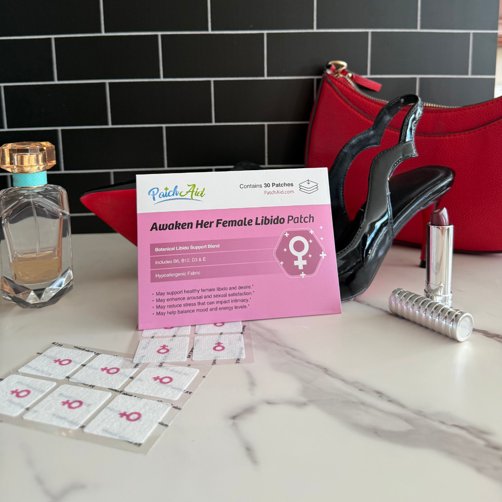 Awaken Her – Female Libido Patch by PatchAid is designed to support women’s sexual wellness, energy, and vitality through a convenient topical patch. It blends carefully selected herbal extracts, amino acids, and vitamins known to promote healthy libido, hormonal balance, and overall well-being—without the need to take pills or capsules.
